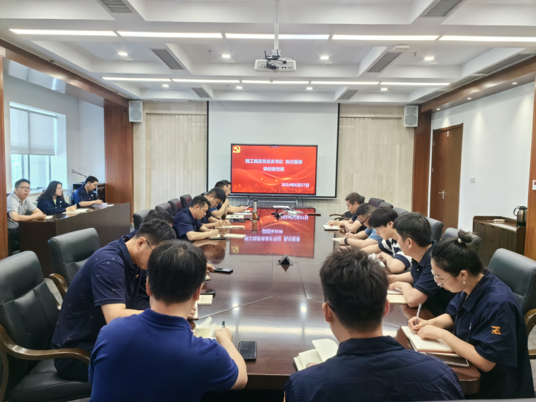 會議包括兩項議程:一是黨總支書記、執行董事曹劍鋒開展以“嚴的基調 ?全面加強紀律建設”為主題黨課 ;二是黨總支副書記、紀檢委員溫隆生開展“以案示警 以案說紀——貫徹《中國共產黨紀律處分條例》”專題輔導。